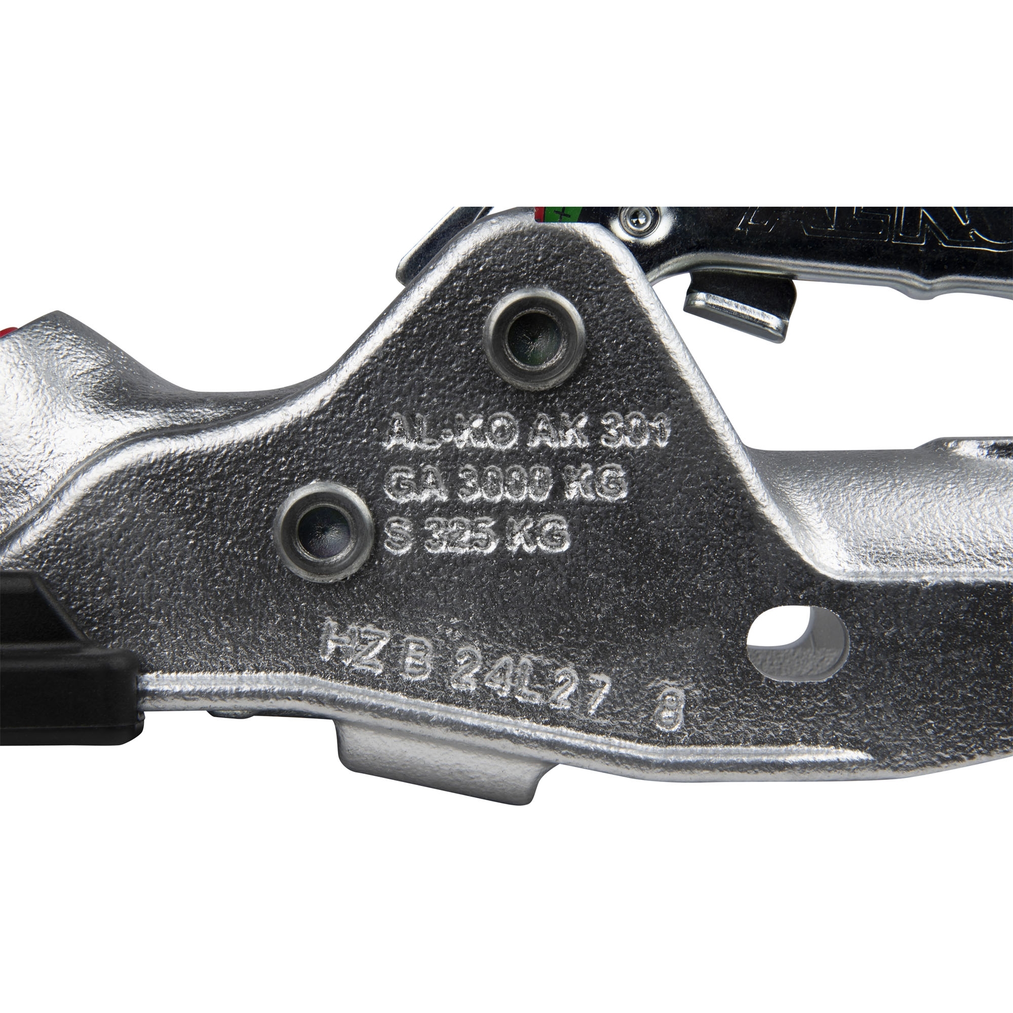 Coupling Head AL-KO Profi Typ AK 301 with Soft-Dock + Safety-Kit Perm. gross weight 3000 kg Nose load 325 kg Drawbar-Ø 50 mm incl. reducers Ø 45 mm Hole horizontal Ø 12.2 mm Hole vertical Ø 12.2 mm Hole distance horizontal 45 - 54 mm Hole distance vertical 40 mm