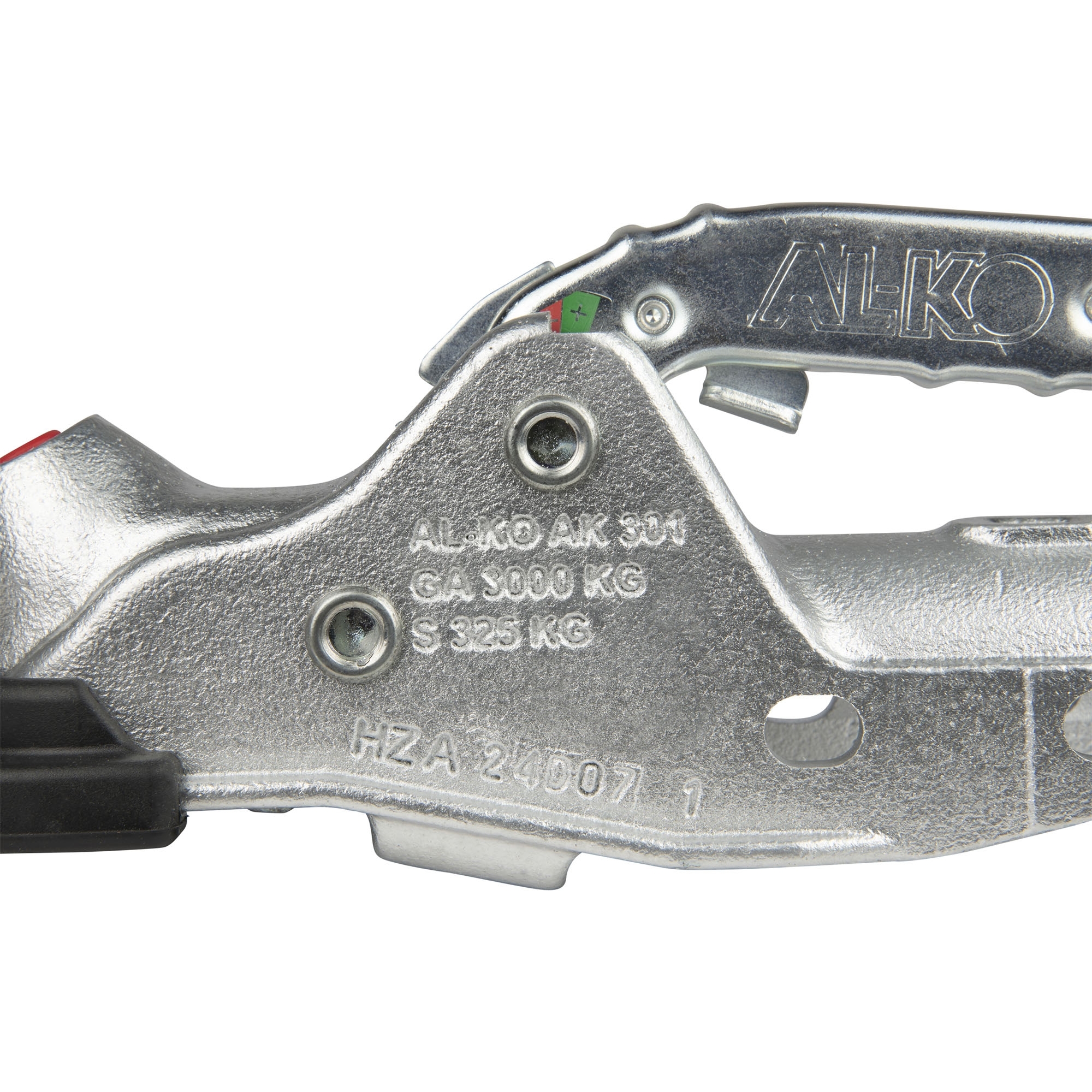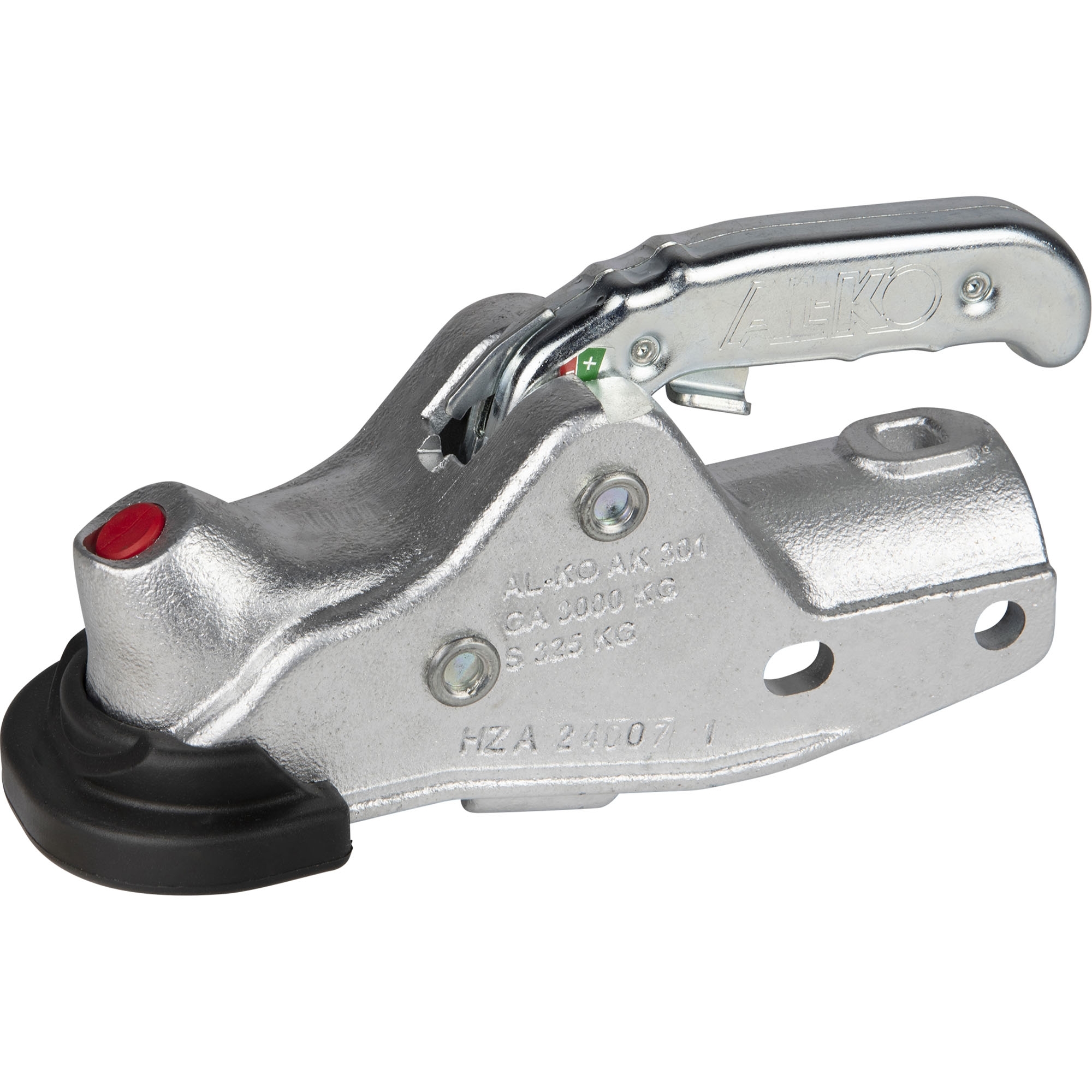 Coupling Head AL-KO Profi Typ AK 301 with Soft-Dock + Safety-Kit Perm. gross weight 3000 kg Nose load 325 kg Drawbar-Ø 50 mm incl. reducers Ø 45 mm Hole horizontal Ø 12.2 mm Hole vertical Ø 12.2 mm Hole distance horizontal 45 - 54 mm Hole distance vertical 40 mm