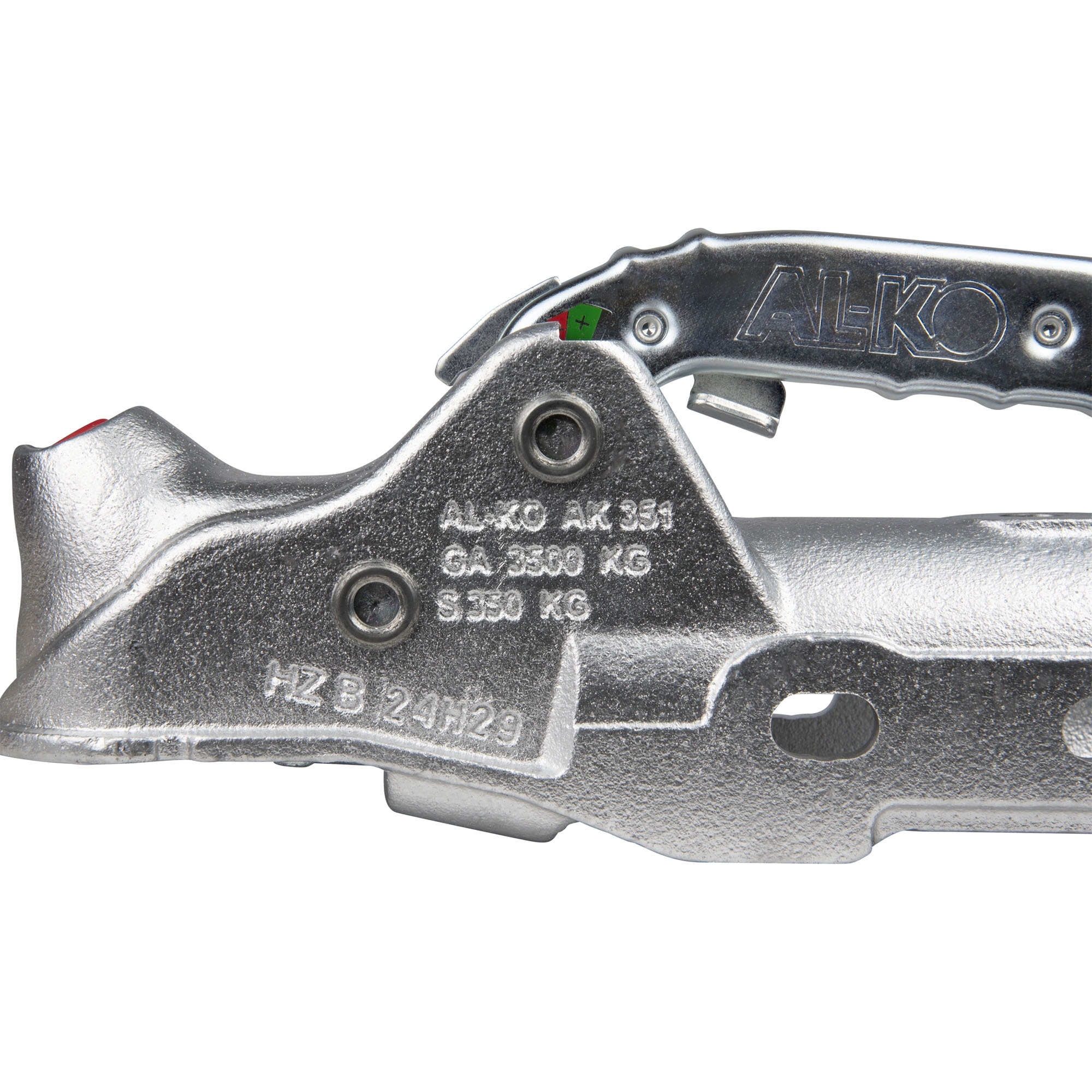 Coupling Head AL-KO Profi Typ AK 351, with Soft-Dock + Safety Kit Perm. gross weight 3500 kg Nose load 350 kg Drawbar-Ø 60 mm Hole horizontal Ø 16.2 mm Hole distance 54 mm
