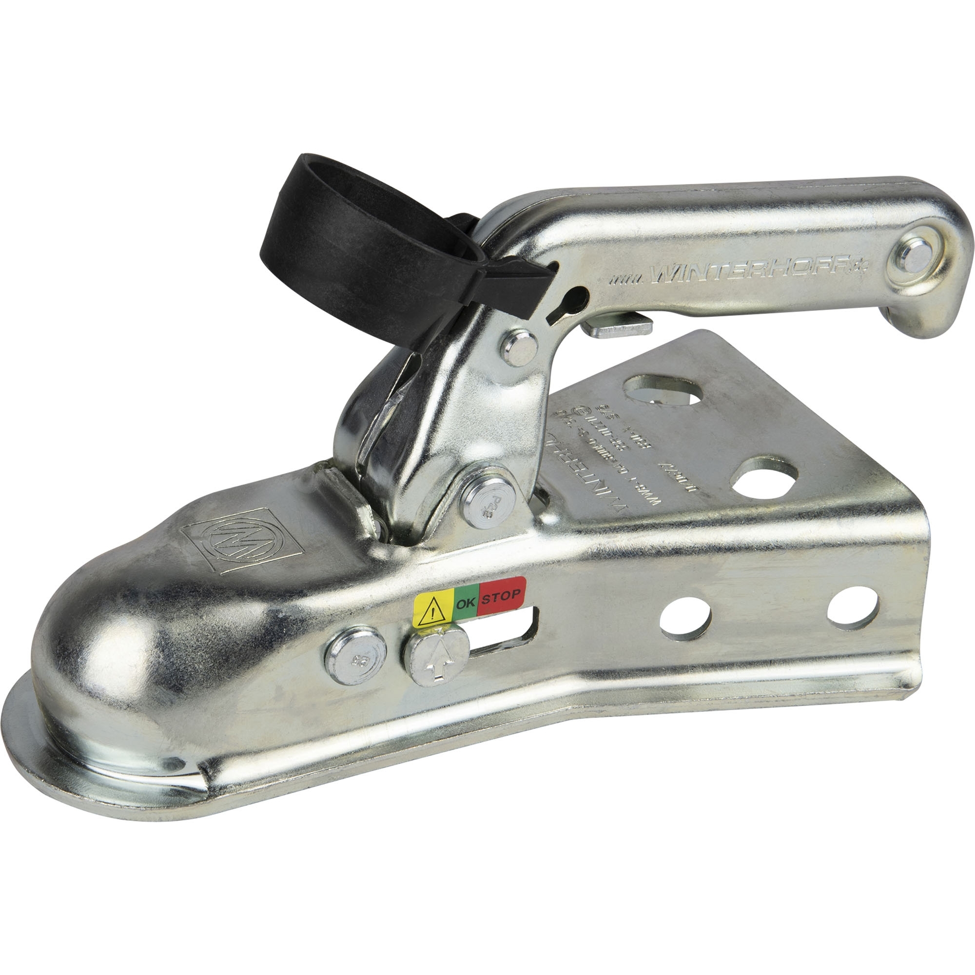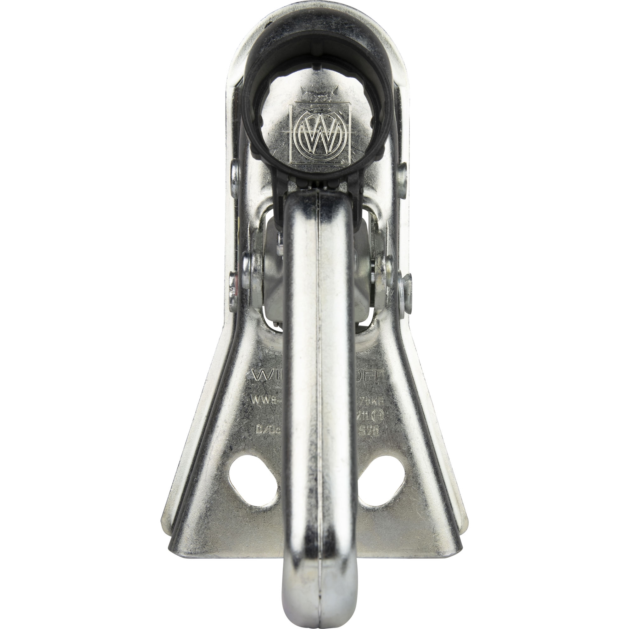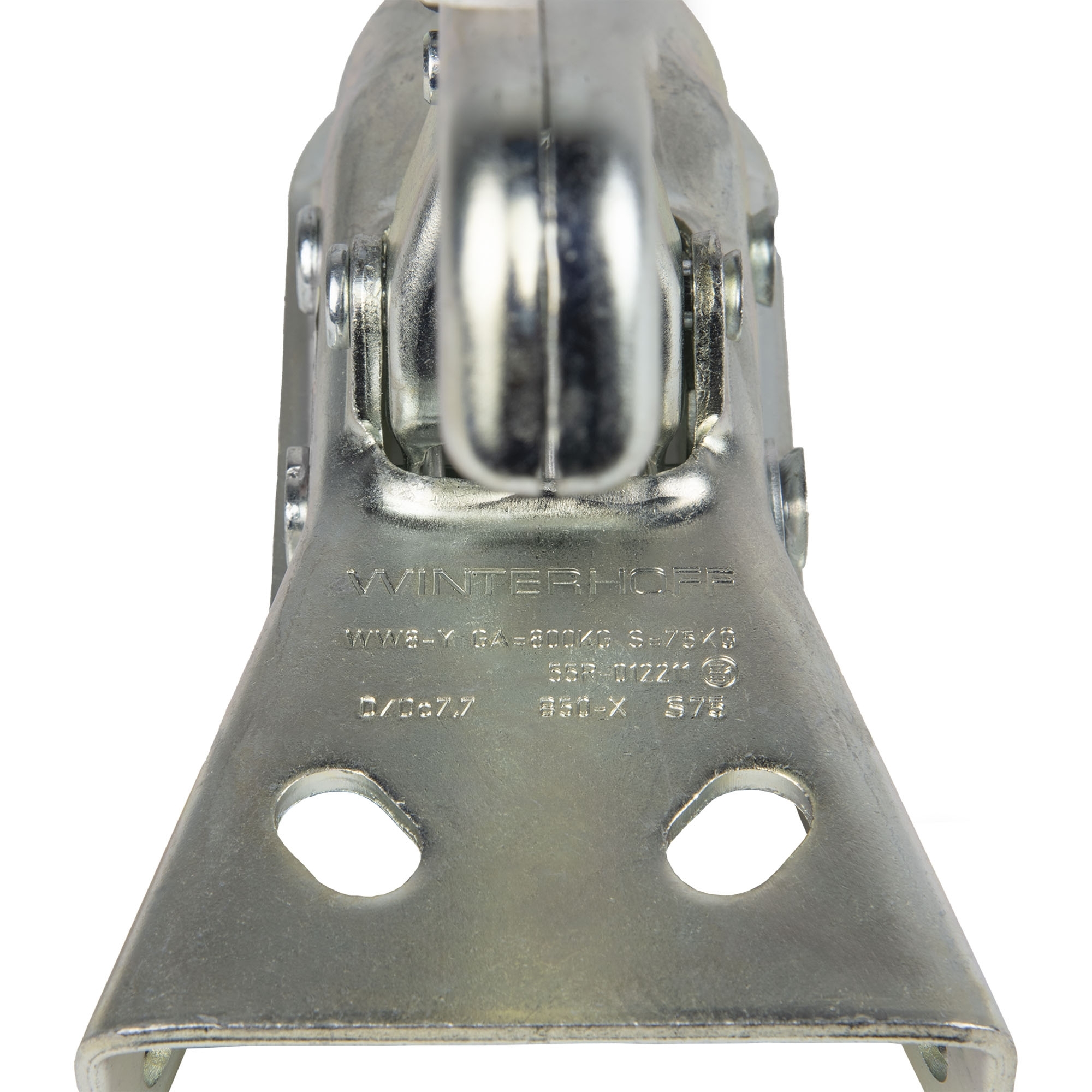 Coupling Head Winterhoff WW8-Y+HAL Permissible total weight: 800 kg Nose load load: 75 kg D/Dc value: 7.7 kN Hole distance horizontal 40 mm Hole distance vertical 50 mm