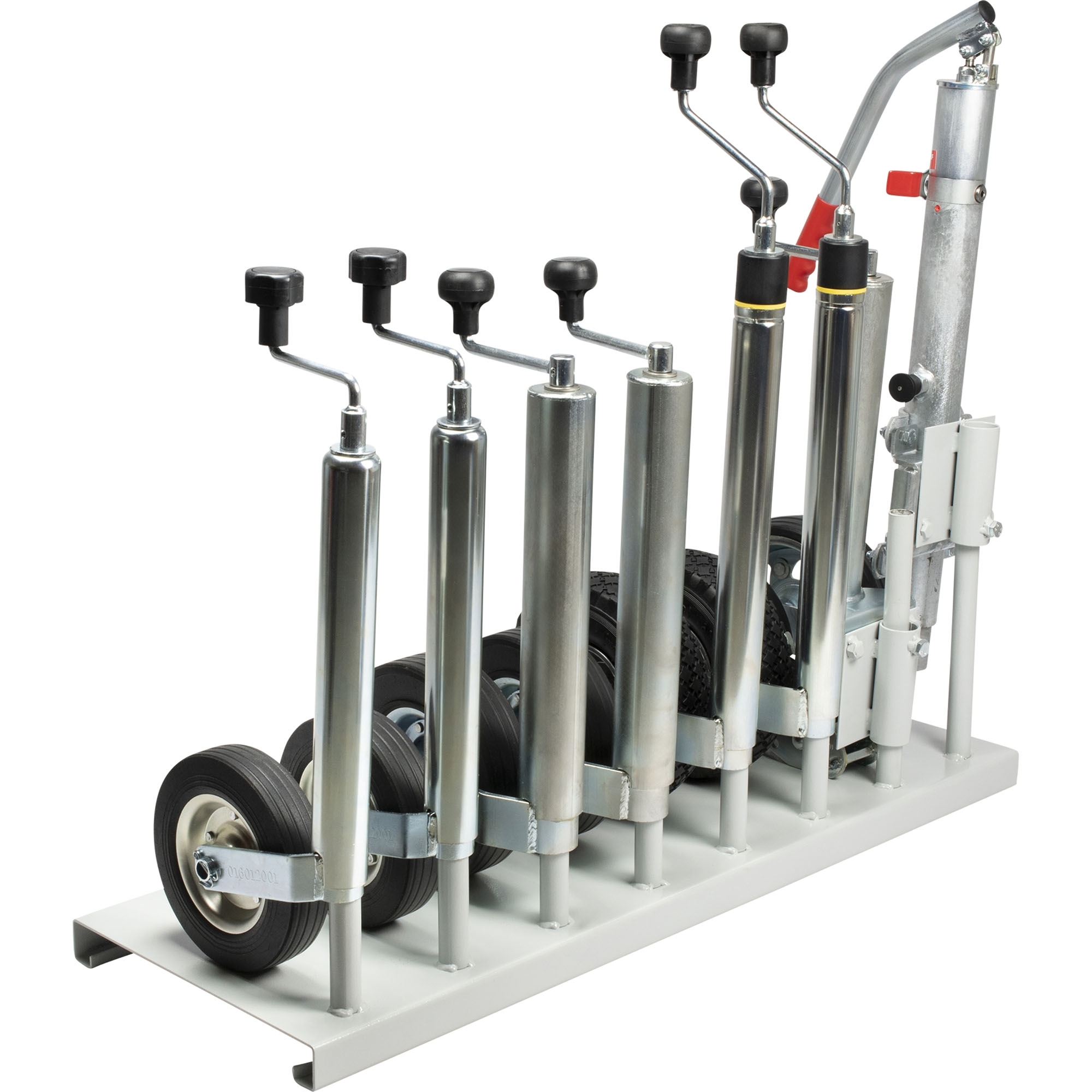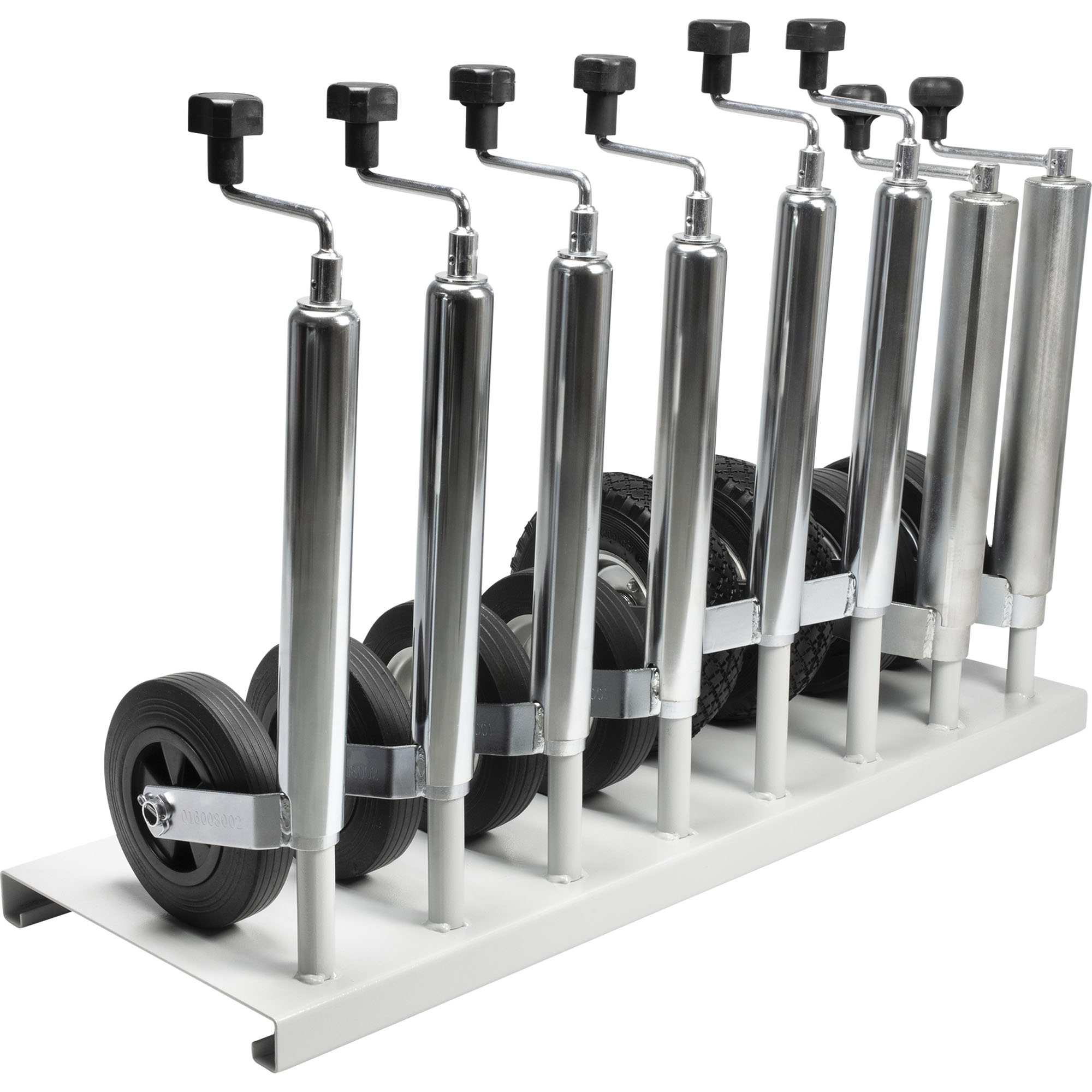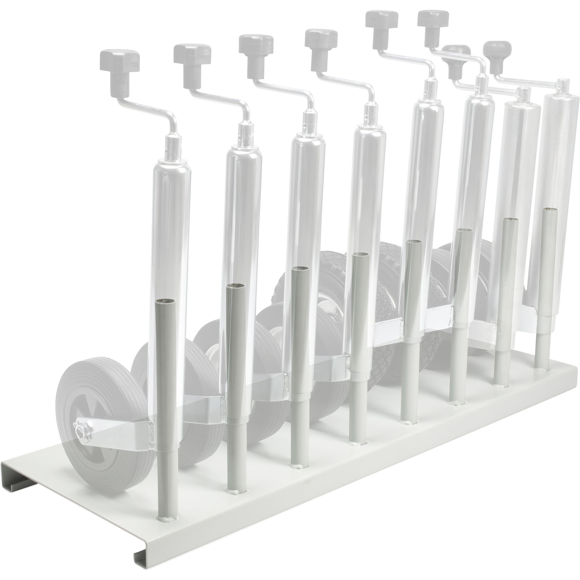 Display stand for 8 jockey wheels All jockey wheels with a Ø 50/ 60 mm except automatic jockey wheels Painted in RAL7035