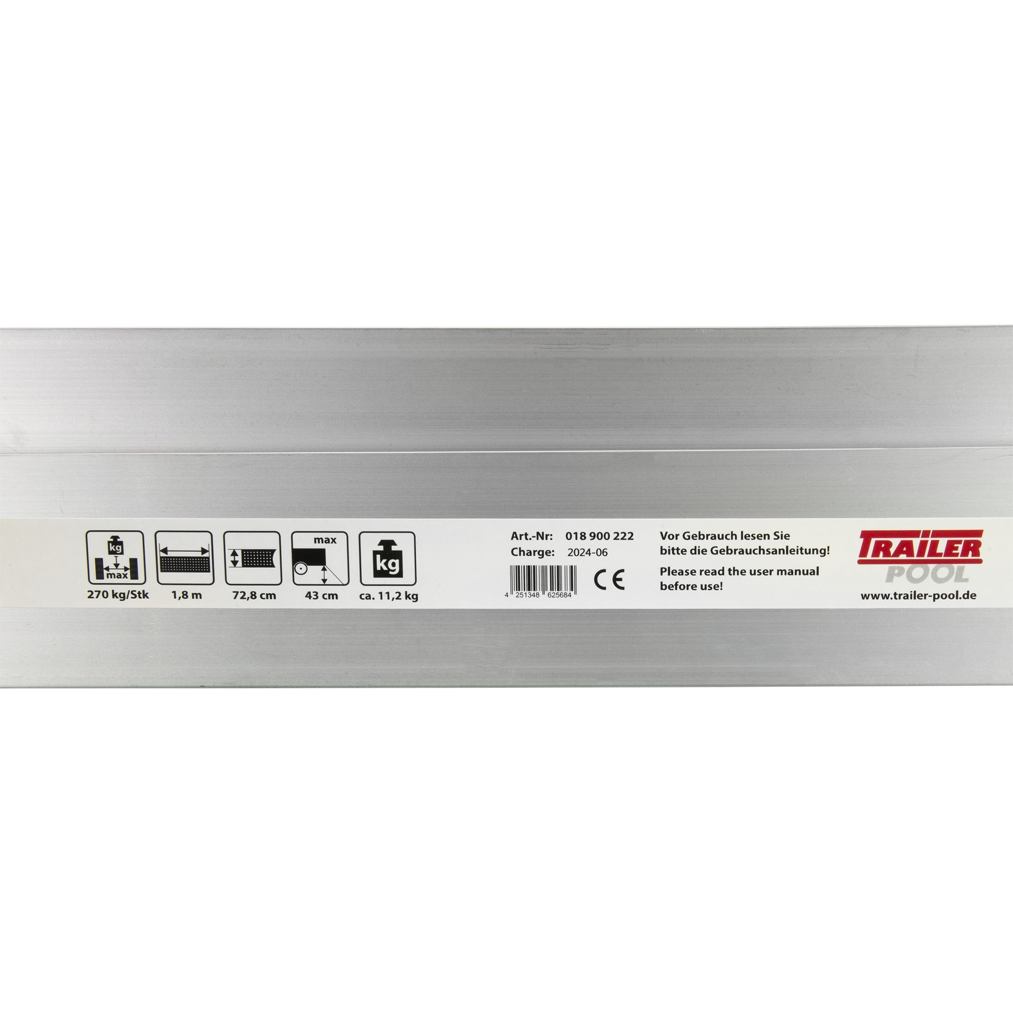Product information "Loading Ramp, foldable lengthwise, Alum, Length 1800 mm, 270 kg"