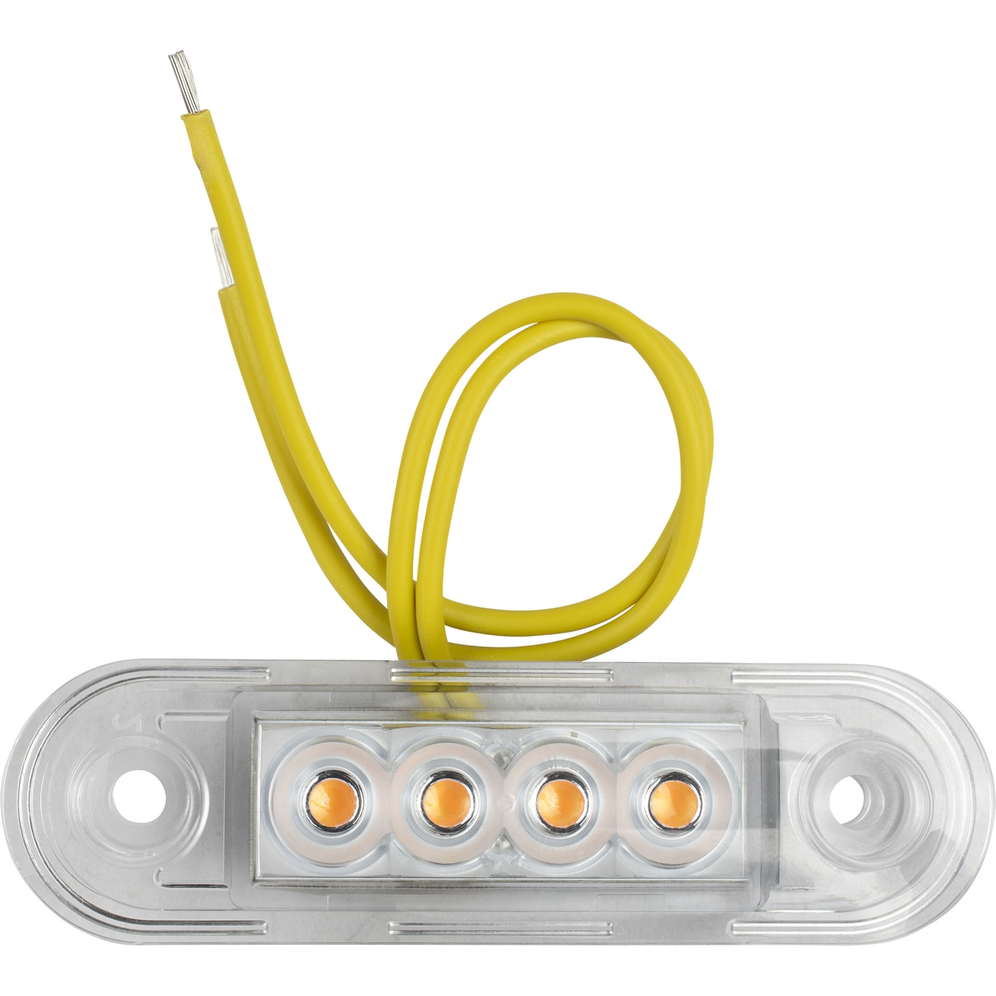 Side marker lamp LED Colour yellow Width 84.2 mm Height 27.7 mm Depth 12.8 mm Hole spacing 58 mm Voltage range 12 – 36 V Connection cable 150 mm