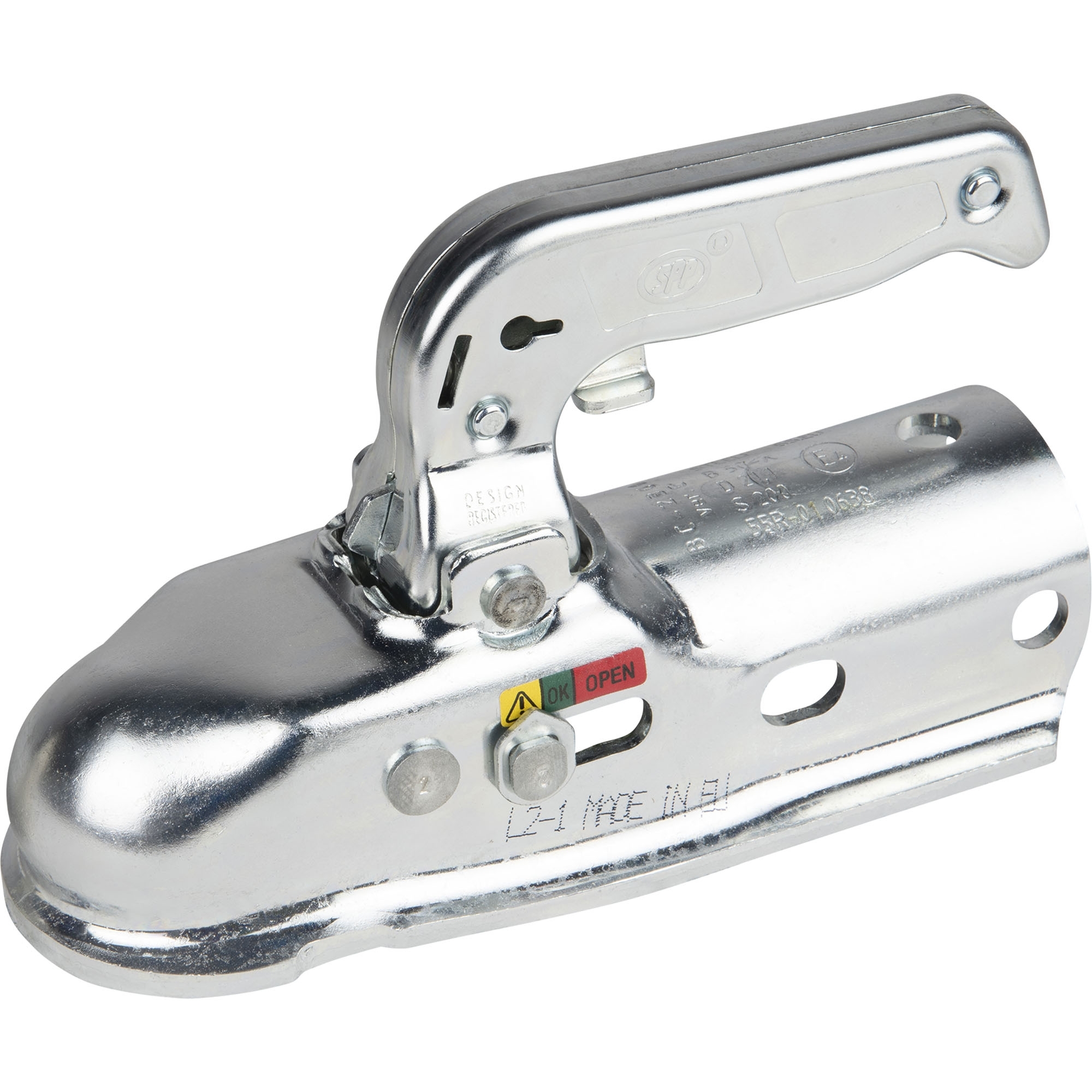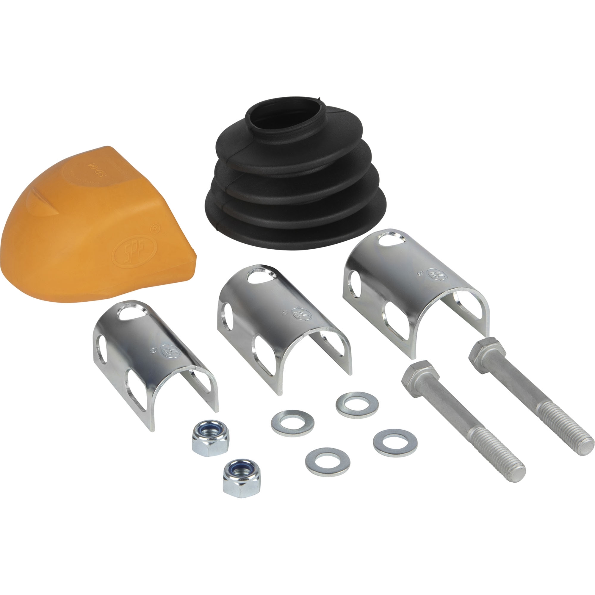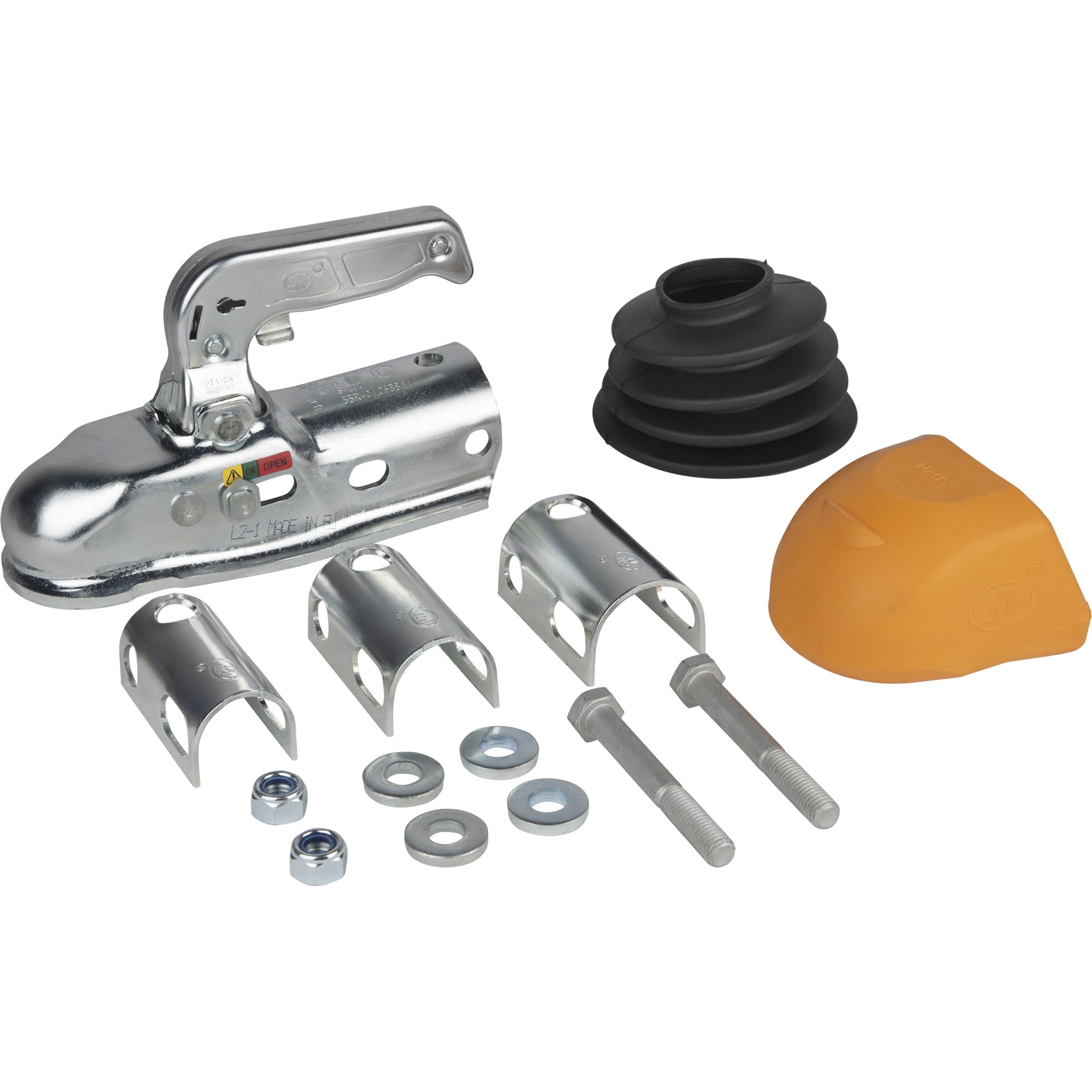 Coupling Head SPP BC-2300C, incl. reducer with soft dock + universal bellows Perm. gross weight 2300 kg Nose load 200 kg Drawbar-Ø 50 mm Reducer Ø 35 / 40 / 45 mm Hole horizontal Ø 12.5 mm Hole vertical Ø 12.5 mm Hole distance horizontal 48 - 54 mm Hole distance vertical 40 mm